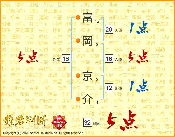 富岡京介さんの総運は32画の5点!