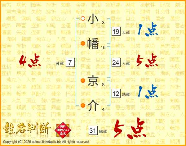 小幡京介さんの総運は31画の5点!