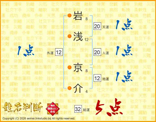 岩浅京介さんの総運は32画の5点!