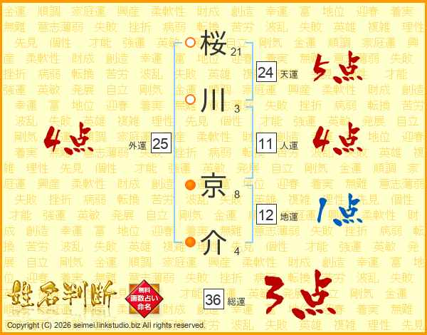 桜(21画)川(3画) 京(8画)介(4画)
