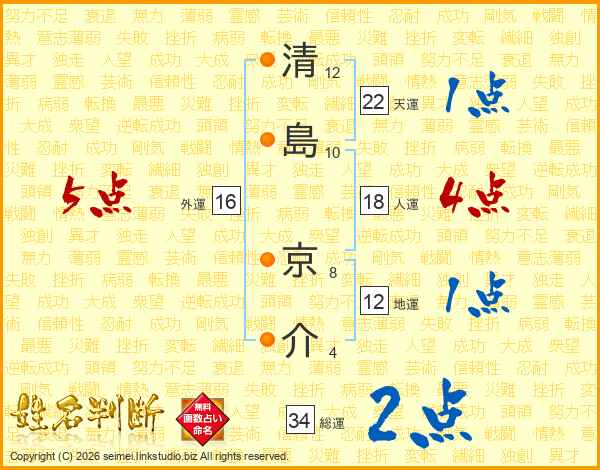 清(12画)島(10画) 京(8画)介(4画)