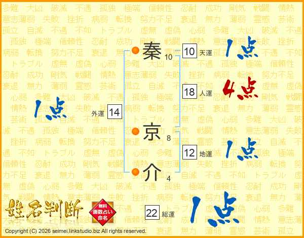 秦京介さんの総運は22画の1点!