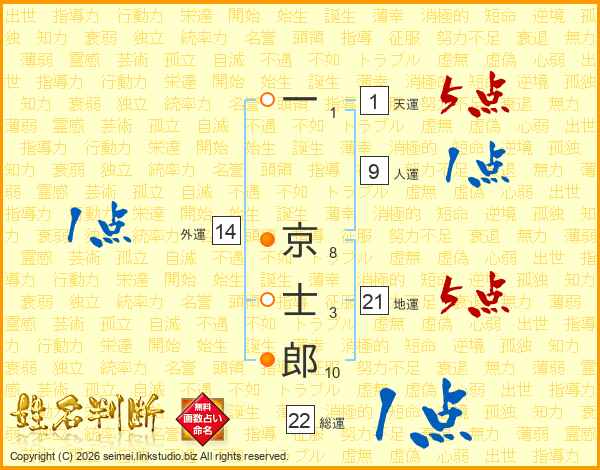 一京士郎さんの総運は22画の1点!