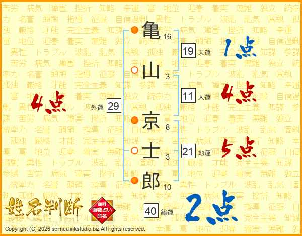 亀山京士郎さんの総運は40画の2点!