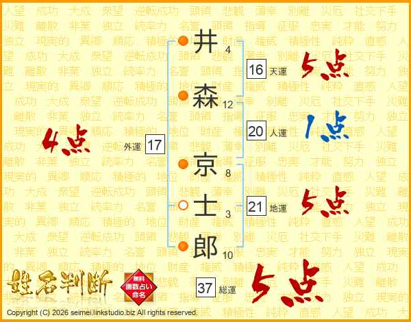 井森京士郎さんの総運は37画の5点!