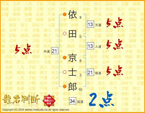 依田京士郎さんの人運は13画の5点!