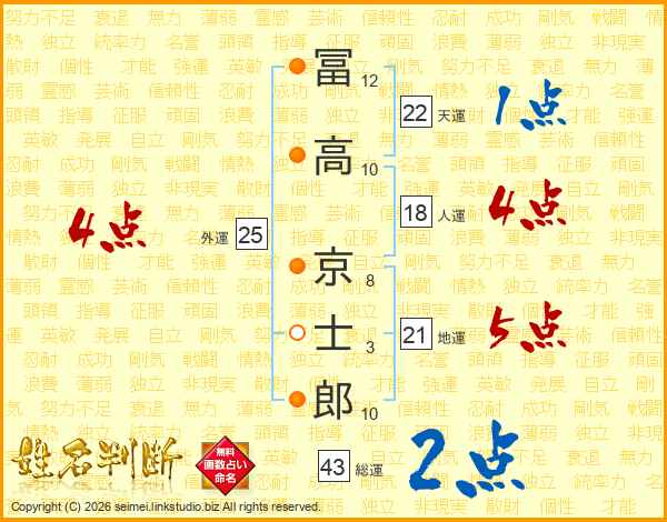 冨高京士郎さんの総運は43画の2点!
