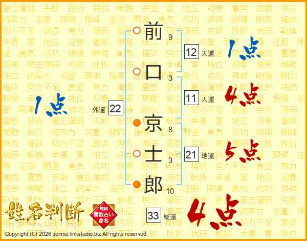 前(9画)口(3画) 京(8画)士(3画)郎(10画)