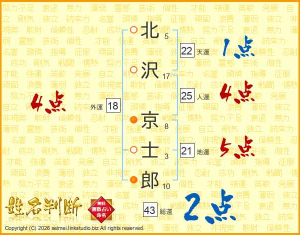 北沢京士郎さんの人運は25画の4点!