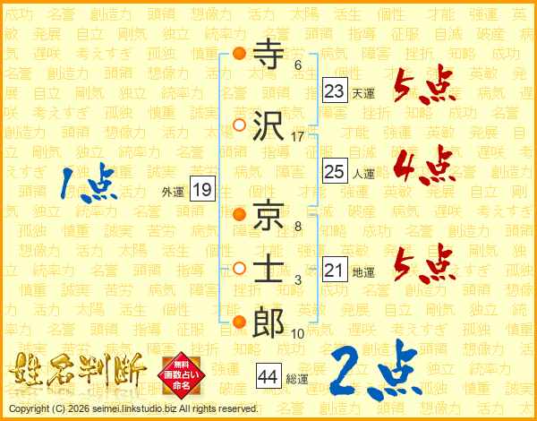寺(6画)沢(17画) 京(8画)士(3画)郎(10画)