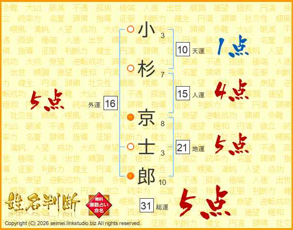 小杉京士郎さんの総運は31画の5点!