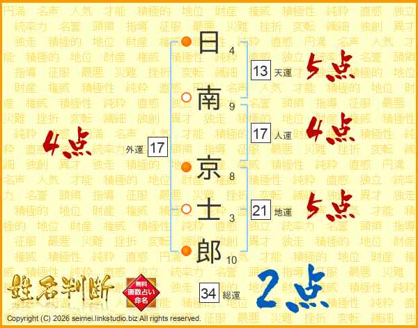 日南京士郎さんの人運は17画の4点!