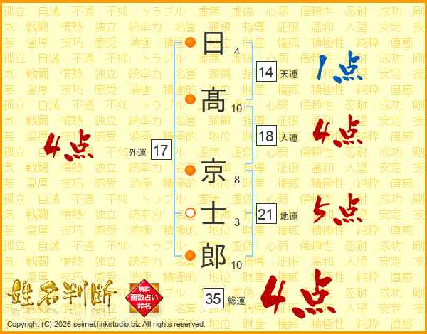 日髙京士郎さんの総運は35画の4点!