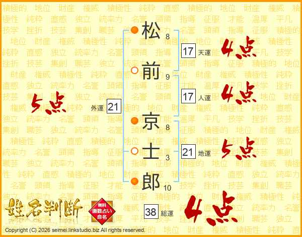 松(8画)前(9画) 京(8画)士(3画)郎(10画)