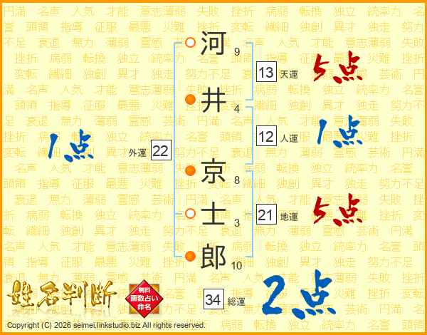 河井京士郎さんの天運は13画の5点!
