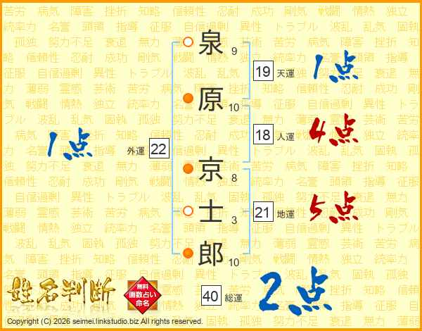 泉(9画)原(10画) 京(8画)士(3画)郎(10画)