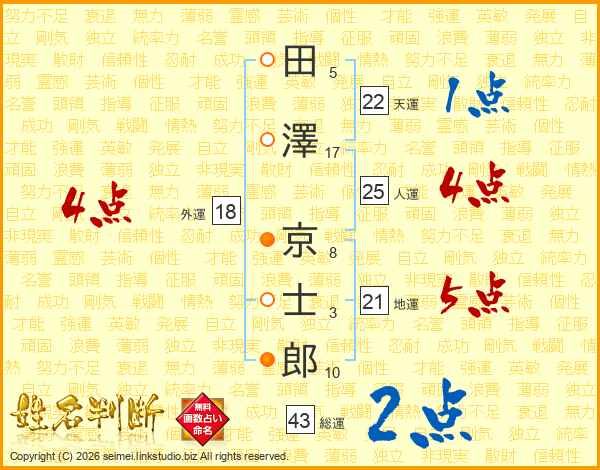 田澤京士郎さんの総運は43画の2点!