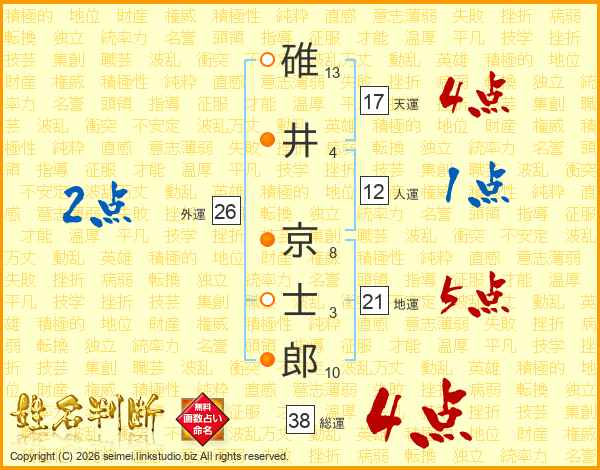 碓井京士郎さんの総運は38画の4点!