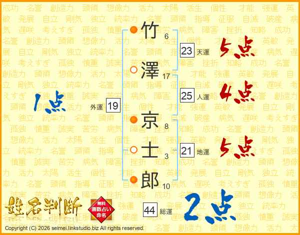 竹澤京士郎さんの人運は25画の4点!