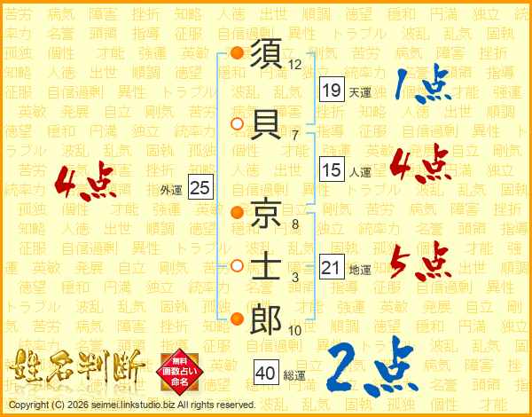須(12画)貝(7画) 京(8画)士(3画)郎(10画)