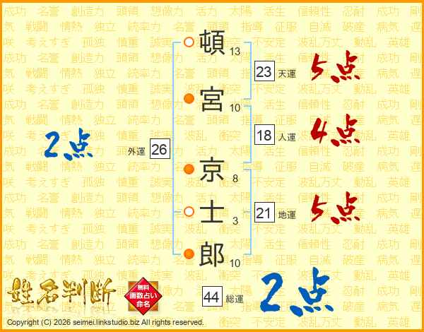 頓宮京士郎さんの総運は44画の2点!