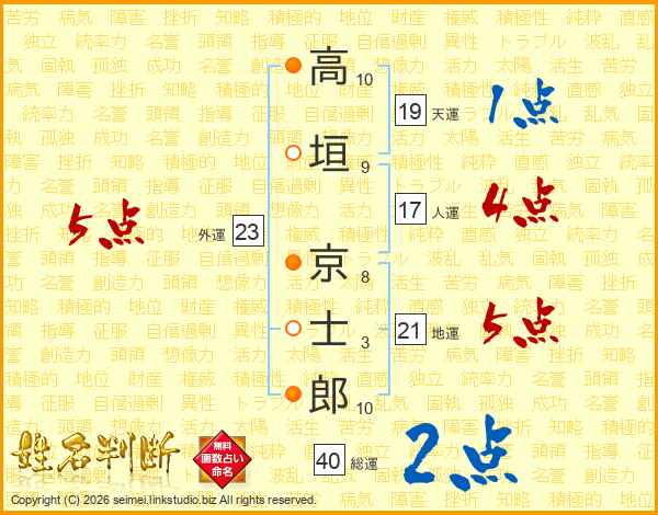 高垣京士郎さんの総運は40画の2点!