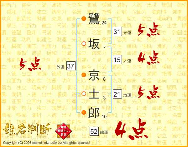 鷺坂京士郎さんの総運は52画の4点!