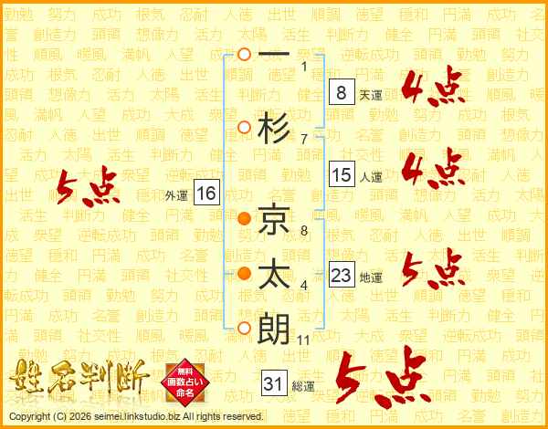 一杉京太朗さんの総運は31画の5点!