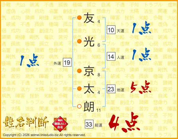 友光京太朗さんの総運は33画の4点!