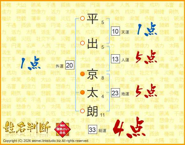 平出京太朗さんの総運は33画の4点!