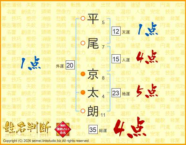 平尾京太朗さんの総運は35画の4点!