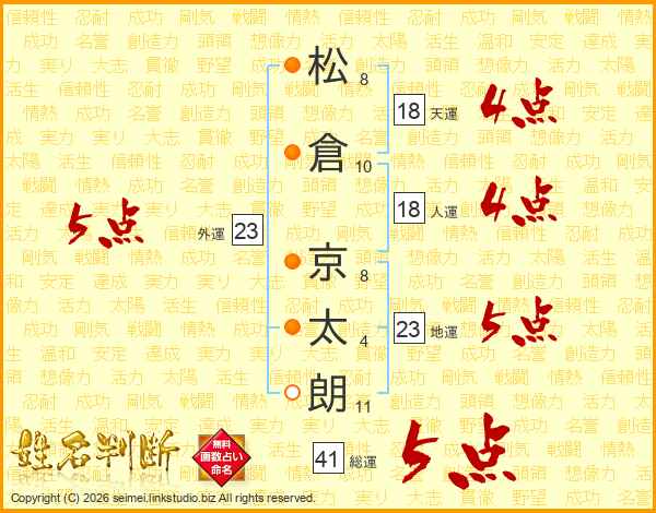 松倉京太朗さんの総運は41画の5点!