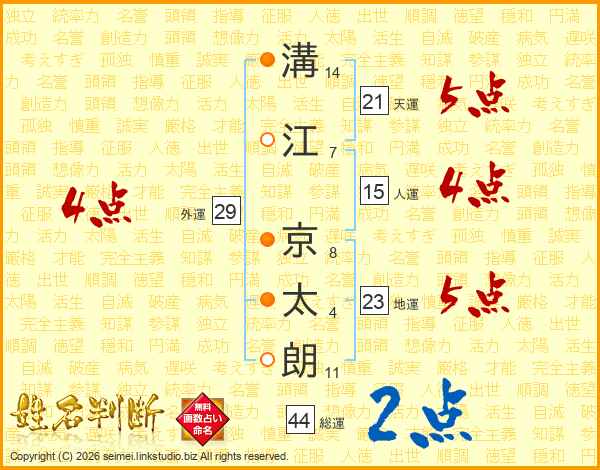 溝(14画)江(7画) 京(8画)太(4画)朗(11画)