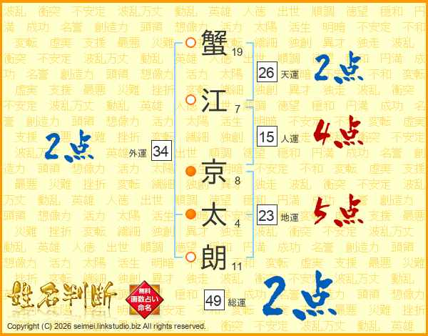 蟹江京太朗さんの総運は49画の2点!