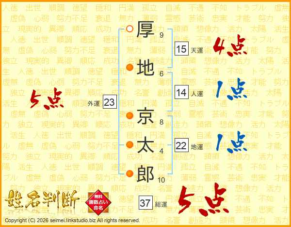 厚地京太郎さんの総運は37画の5点!