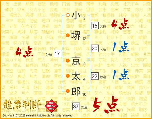 小堺京太郎さんの総運は37画の5点!