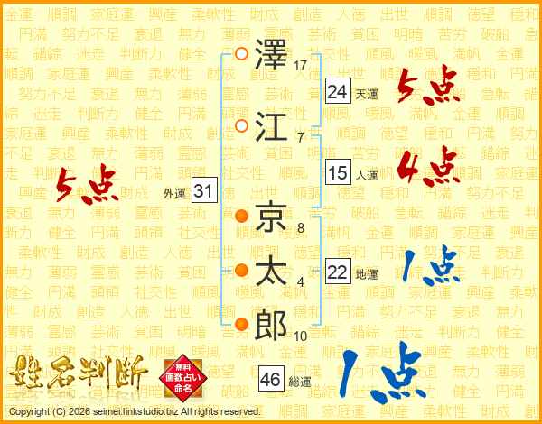 澤江京太郎さんの外運は31画の5点!