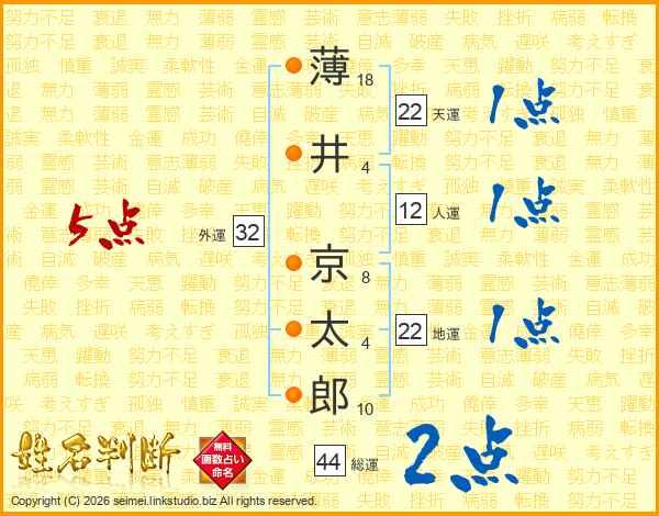薄井京太郎さんの総運は44画の2点!