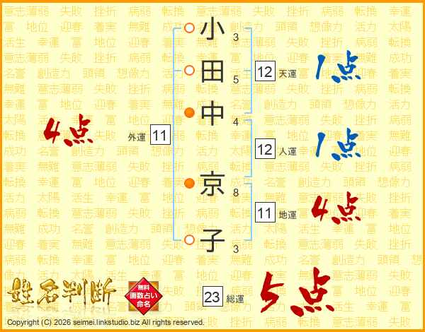 小田中京子さんの総運は23画の5点!