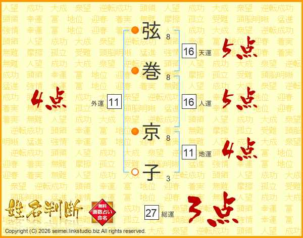 弦(8画)巻(8画) 京(8画)子(3画)