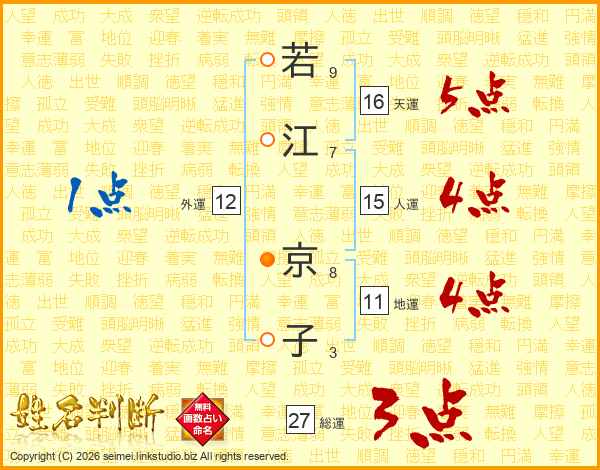 若江京子さんの総運は27画の3点!