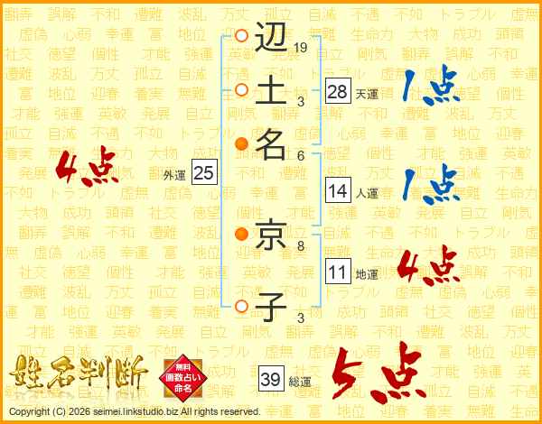 辺(19画)土(3画)名(6画) 京(8画)子(3画)