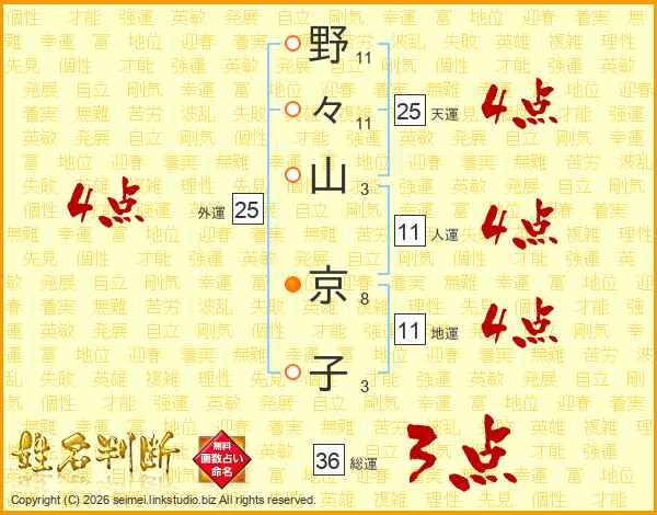 野々山京子さんの地運は11画の4点!