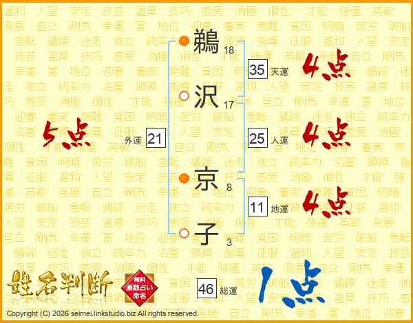 鵜沢京子さんの総運は46画の1点!