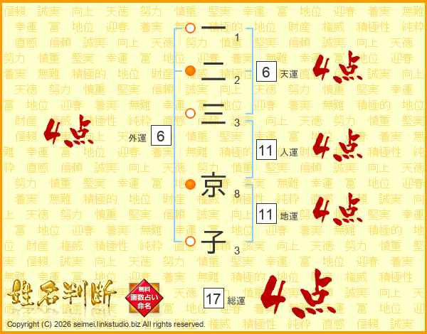 一二三京子さんの総運は17画の4点!