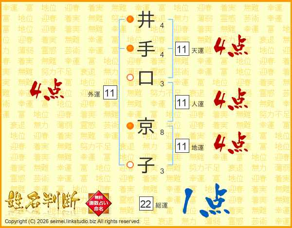 井(4画)手(4画)口(3画) 京(8画)子(3画)