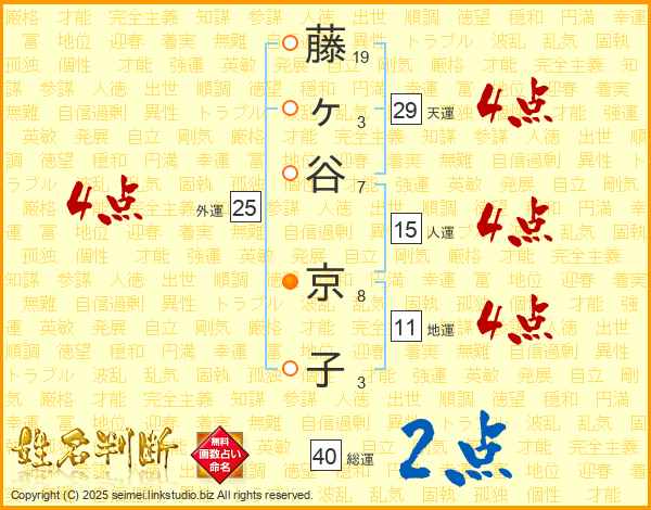藤ヶ谷京子さんの総運は40画の2点!