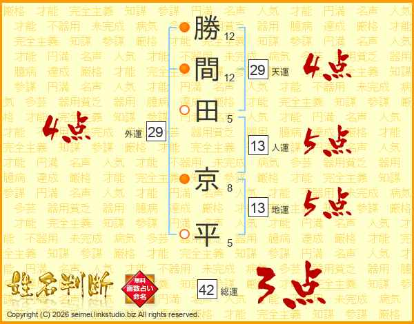 勝(12画)間(12画)田(5画) 京(8画)平(5画)