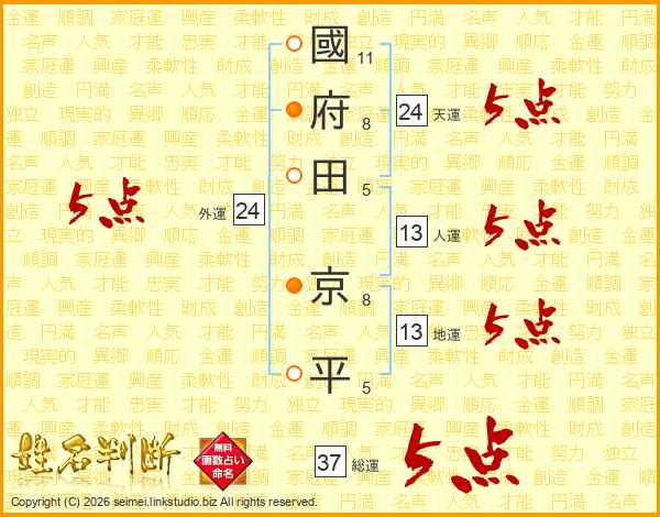 國府田京平さんの総運は37画の5点!