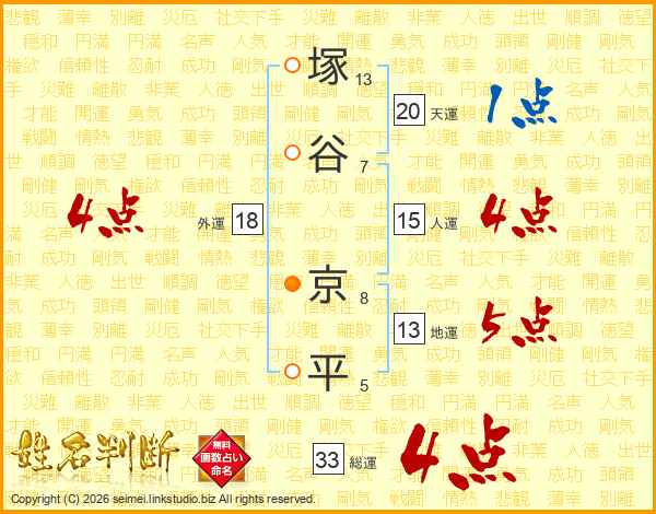 塚谷京平さんの総運は33画の4点!